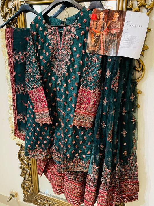 La Royale By Iznik Stitched 3 Piece Embroidered Net Suits IZ22 IRC-03 Fonce Night - Luxury Formal Collection