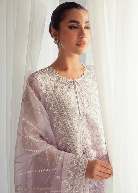 Luxe Atelier By Cross Stitch Unstitched 4 Piece Embroidered Organza Suit CS23 D-02 Wisteria Bella - Luxury Collection