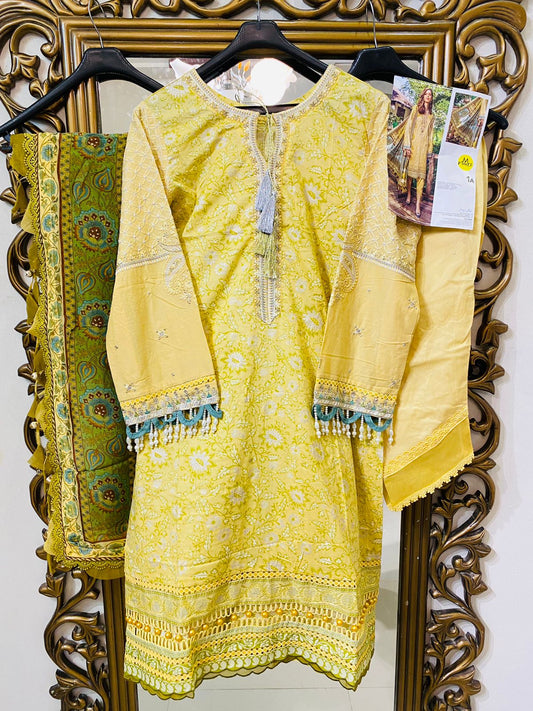 M Prints By Maria B Stitched 3 Piece Embroidered Lawn Suits - 1A - Luxury Lawn Collection