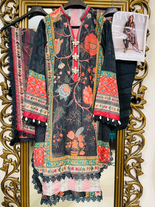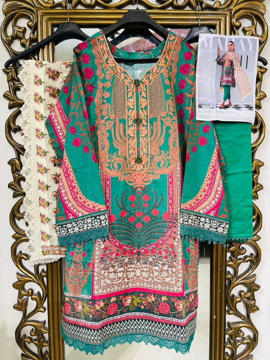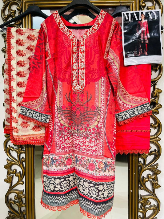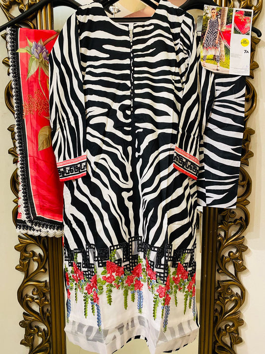 M Prints By Maria B Stitched 3 Piece Embroidered Lawn Suits - 7A - Luxury Lawn Collection