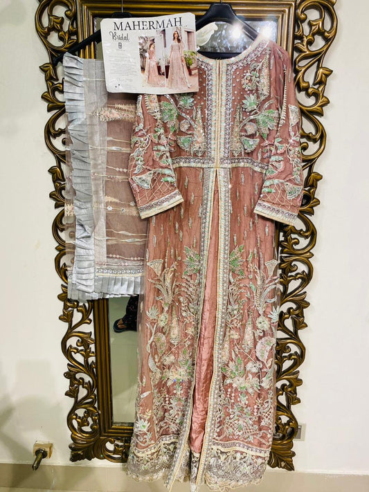 Mahermah By Emaan Adeel Stitched 3 Piece Embroidered Net Suit EA22 MB-205 - Bridal Collection