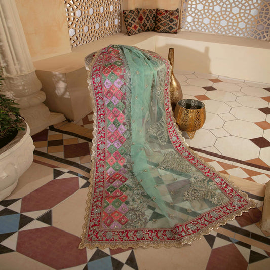 Maryam Hussain Unstitched 3 Piece Embroidered Lawn Suit - D2-Mint Luxury Lawn