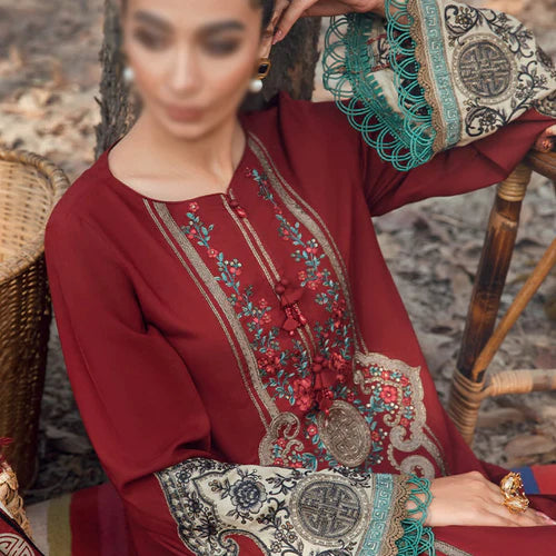 Maryum N Maria Unstitched 2 Piece Embroidered Chiffon Suit - 2020-MMC-06 RUST NILE - Luxury Wedding Collection