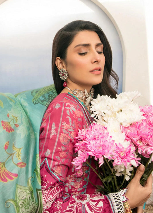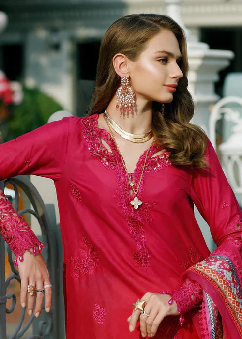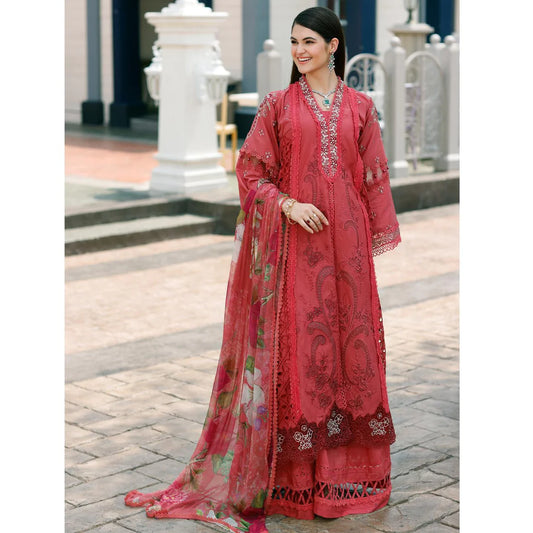 Noor By Saadia Asad Unstitched 3 Piece Embroidered Lawn Suit - NSA23ESL D4-Rosa - Summer Eid Collection