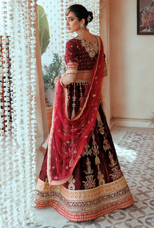 Noor By Saadia Asad Unstitched 3 Piece Embroidered Raw Silk Suit NSA22WD D3 Banafsheh - Wedding Collection