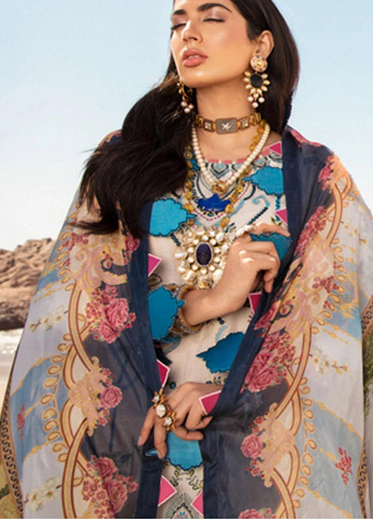 Noor By Saadia Asad Unstitched 3 Piece Embroidered Lawn Suit - NSA23ESL D8-Liana - Eid Collection