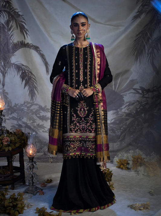 Salitex by Nora Unstitched 3 Piece Embroidered Chiffon Suit WUS3LA23NO38UT - Black - Luxury Collection