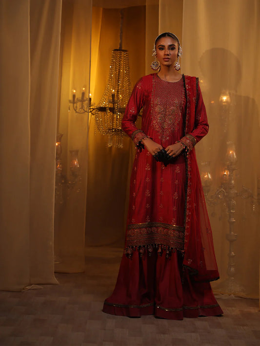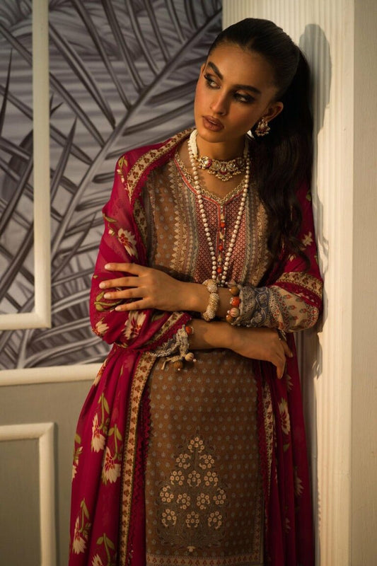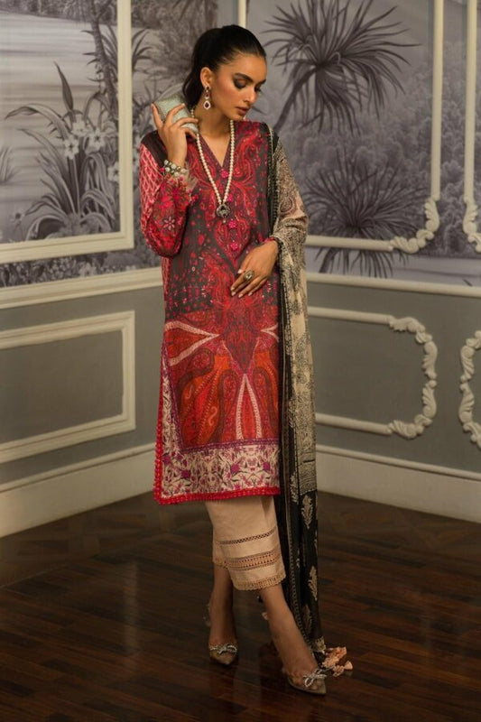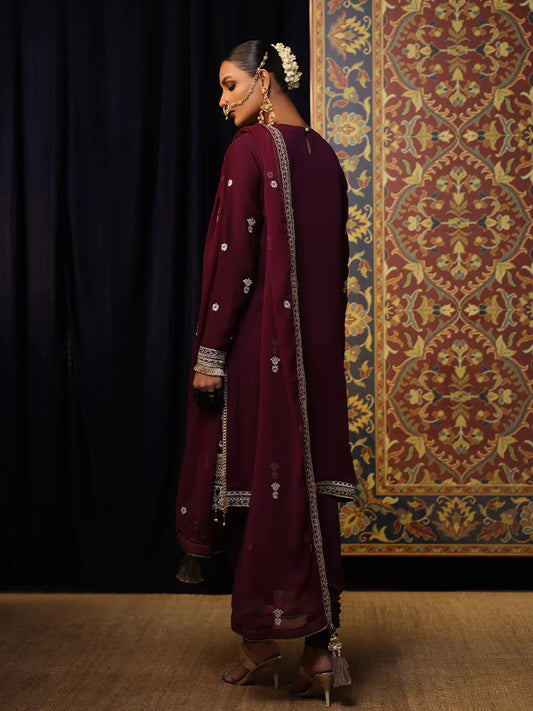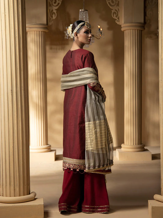 Salitex by Nora Unstitched 3 Piece Embroidered Suit WUS3LA23NO25UT - Maroon - Luxury Collection