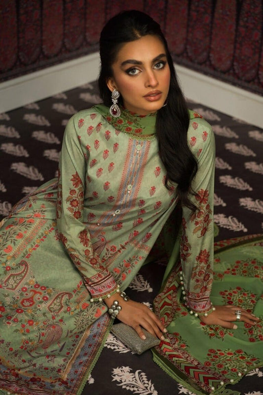 Salitex by Nora Unstitched 3 Piece Embroidered Suit WUS3LA23NO40UT - Bottle Green - Luxury Collection