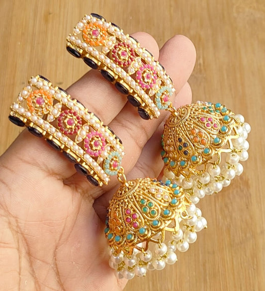 Dazzling Jhumka Baliyaan Nauratan Earrings Gold Plated E-02