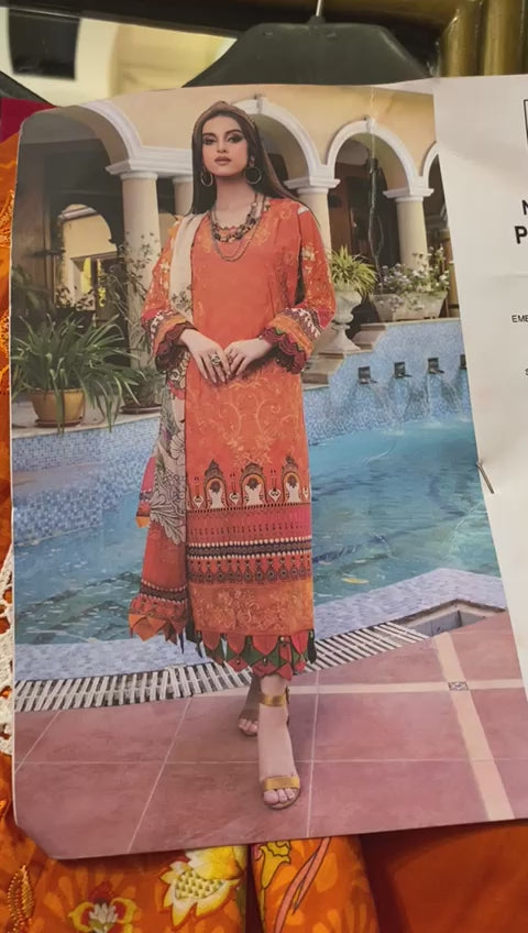 Naushad Imdad Stitched 3 Piece Embroidered Lawn Suit - Orange Tiger NI-LL-005 - Luxury Lawn Collection