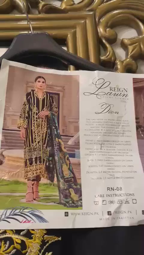 Reign Stitched 3 Piece Embroidered Lawn Suit RN08-DION - Summer Collection