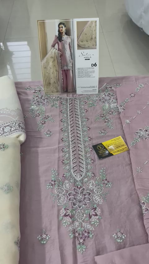 Sateen By Maria B Unstitched 3 Piece Embroidered Cotton Suit MB23ST D-06 Mauve - Luxury Collection