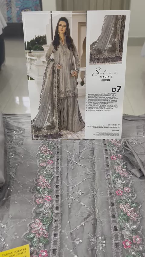 Sateen By Maria B Unstitched 3 Piece Embroidered Cotton Suit MB23ST D-07 Grey - Luxury Collection